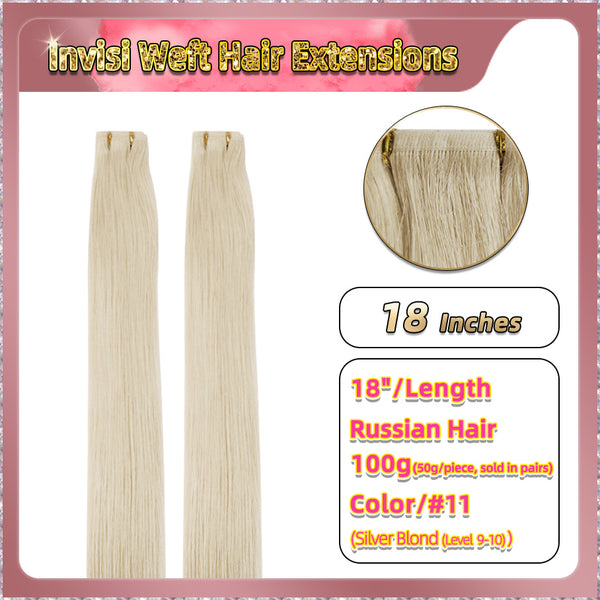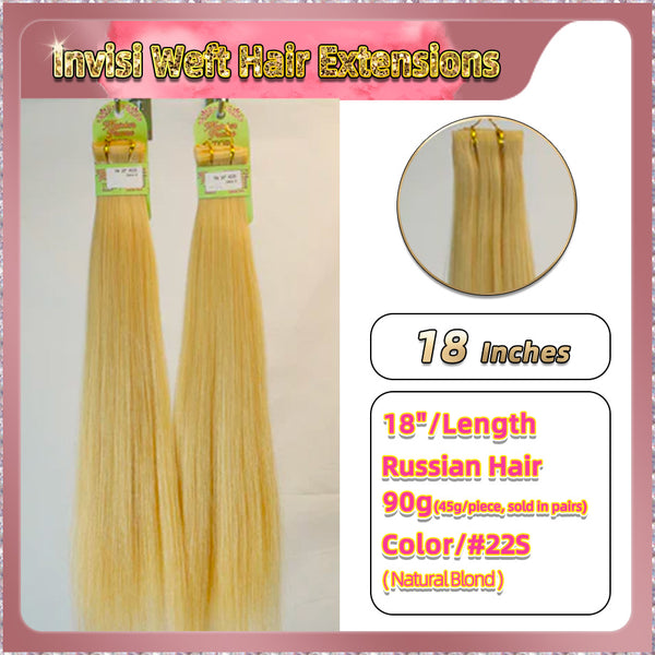 18'' Invisi Weft Hair Extensions 2 Strips Standard Full Head (Blond)