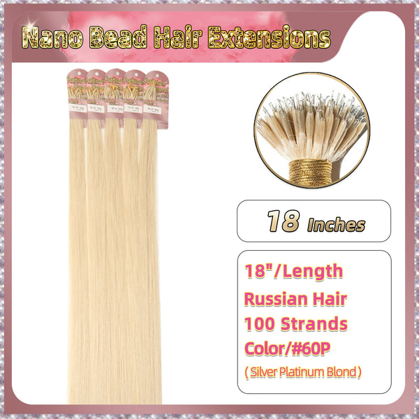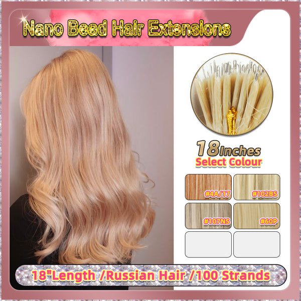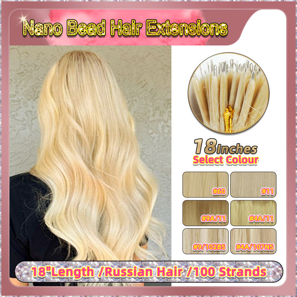 18" Nano Bead Hair Extensions 100 Stands Full Head (Blond)