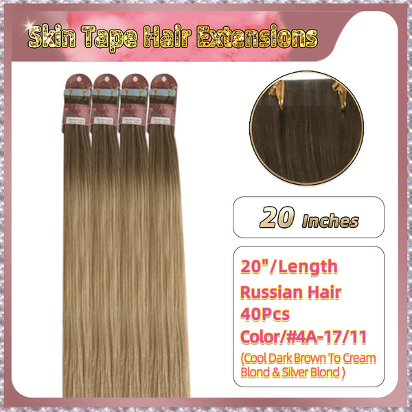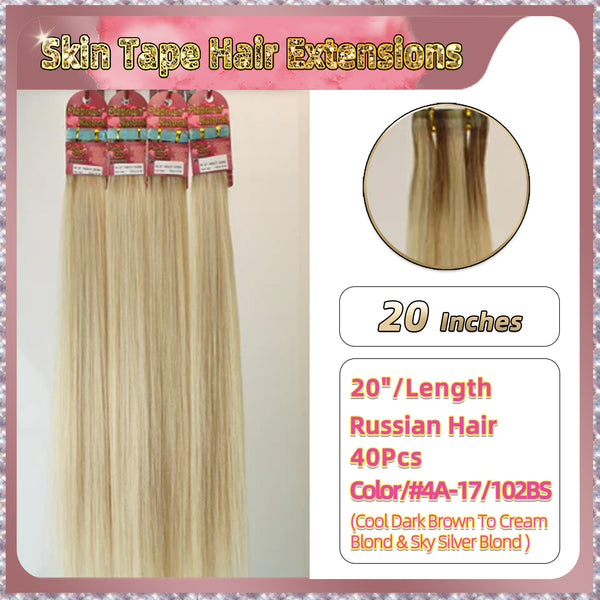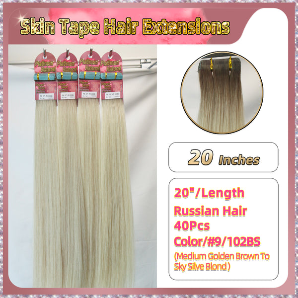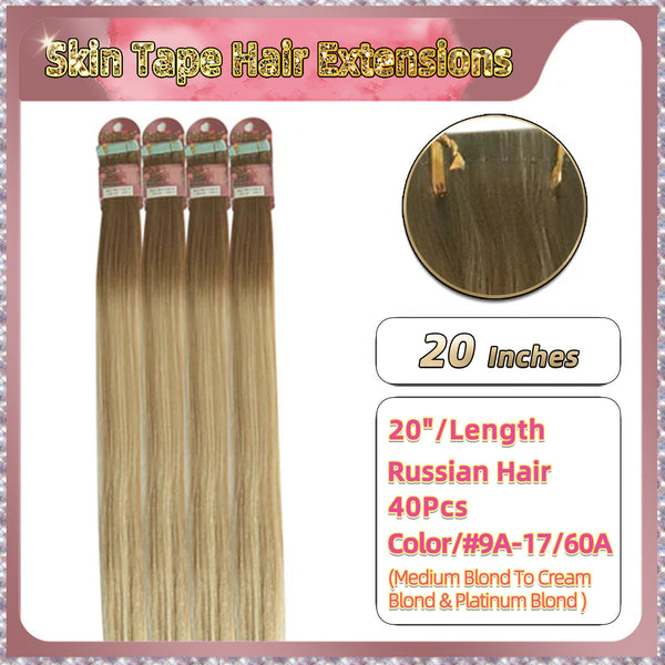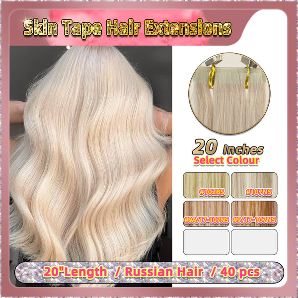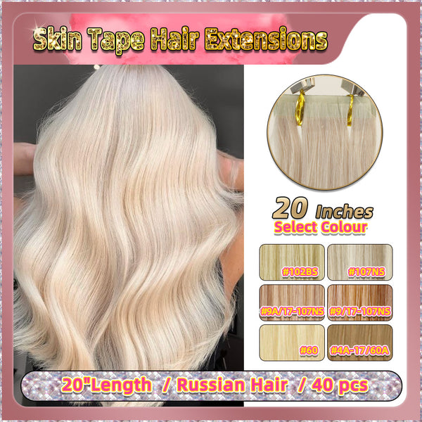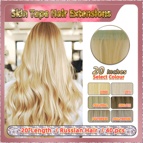 20'' Skin Tape Hair Extensions 40 PCs Standard Full Head (Blond)