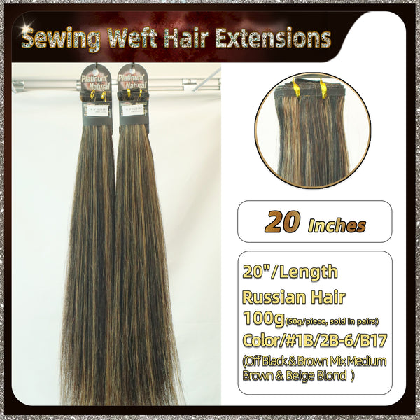 20‘’ Sewing Weft Hair Extensions 2 Strips Standard Full Head (Dark Brown To Blond)