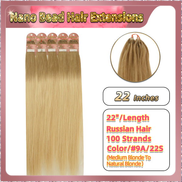 22" Nano Bead Hair Extensions 100 Stands Full Head (Blonde)