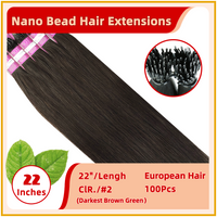 22" #2 100 Strands European Hair Nano Bead Hair Extensions Darkest Brown