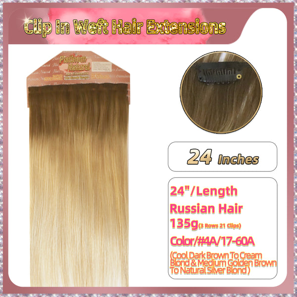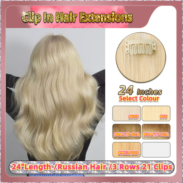 24'' Clip In Hair Extensions 3 Rows 21 Clips Standard Full Head(Blond)