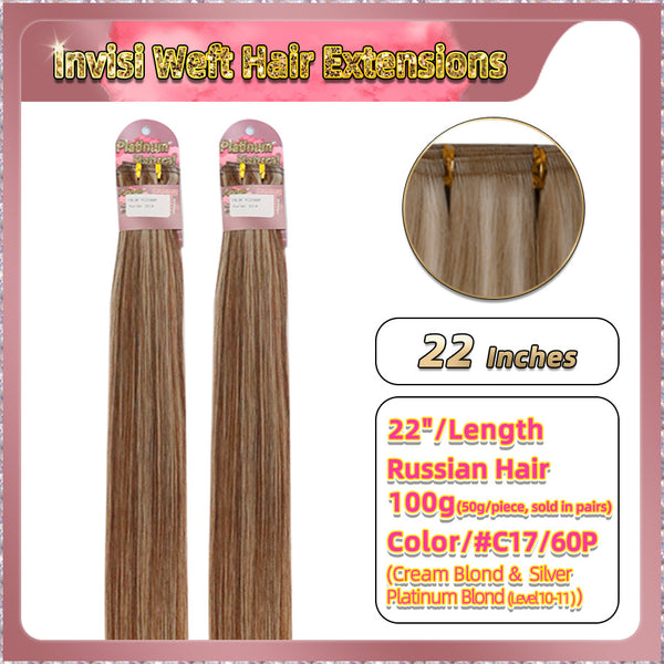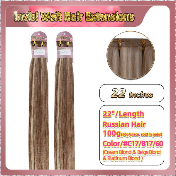 22'' Invisi Weft Hair Extensions 2 Strips Standard Full Head (Blond)