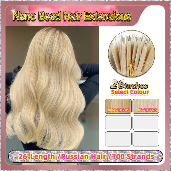 26" Nano Bead Hair Extensions 100 Stands Full Head (Blond)