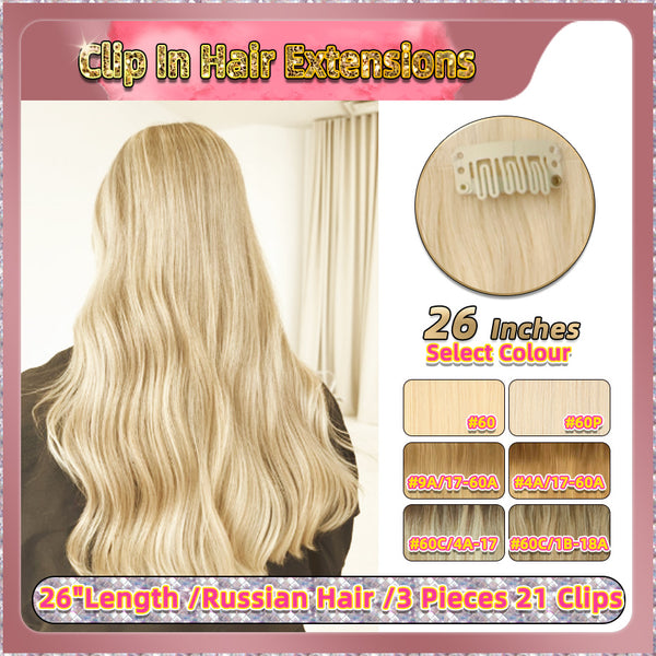 26'' Clip In Hair Extensions 3 Rows 21 Clips Standard Full Head(Blond)