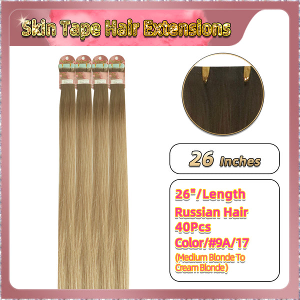 26'' Skin Tape Hair Extensions 40 PCs Standard Full Head (Blonde)