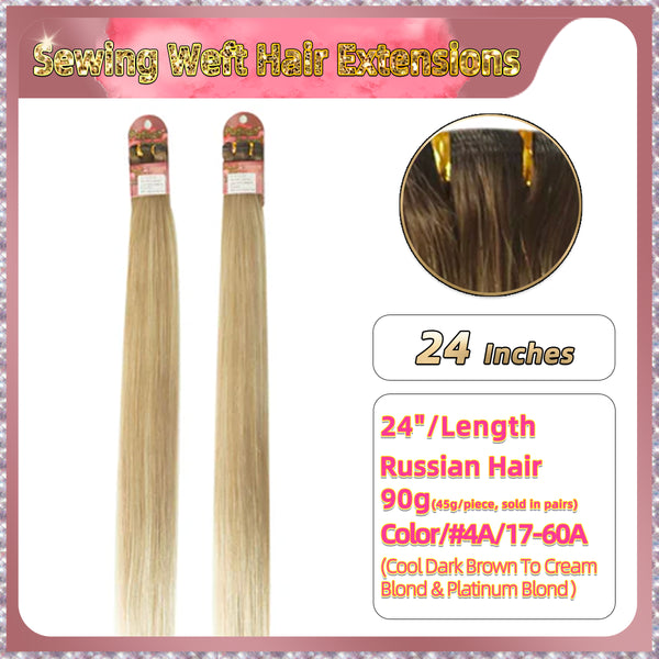 24'' Sewing Weft Hair Extensions 2 Strips Standard Full Head (Blond)