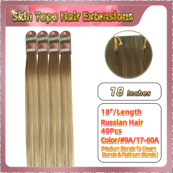 18'' Skin Tape Hair Extensions 40 PCs Standard Full Head (Blonde)