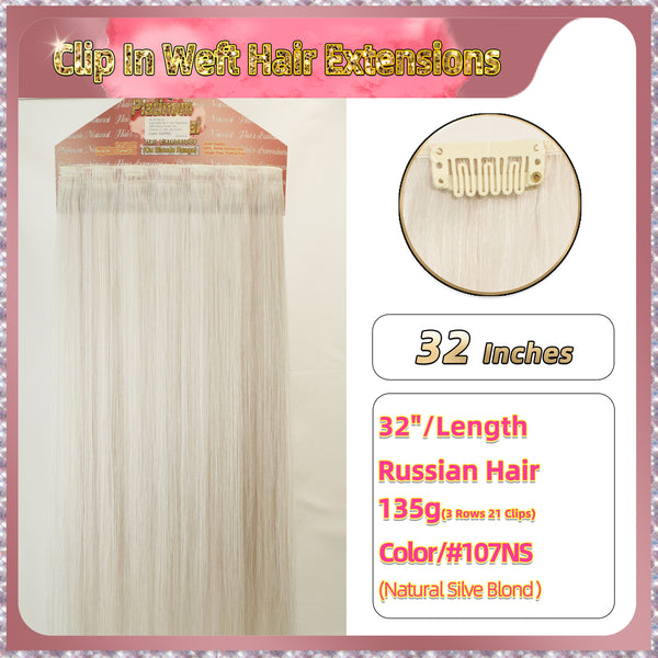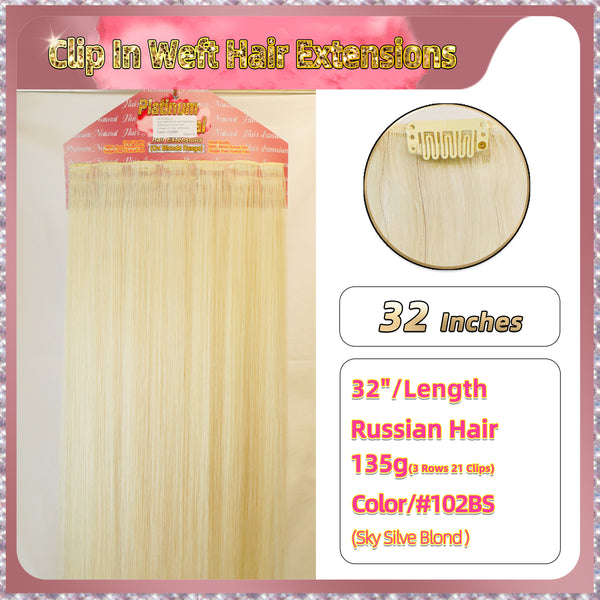 32'' Clip In Hair Extensions 3 Rows 21 Clips Standard Full Head(Blond)