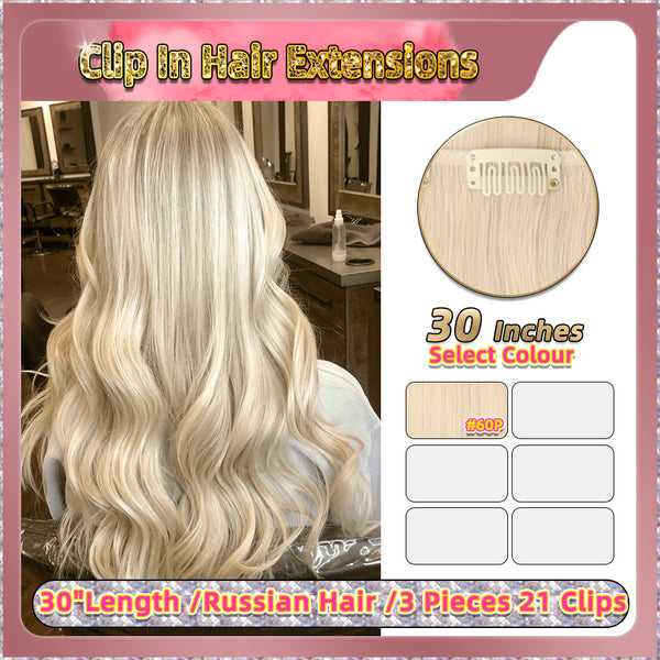 30'' Clip In Hair Extensions 3 Rows 21 Clips Standard Full Head(Blond)